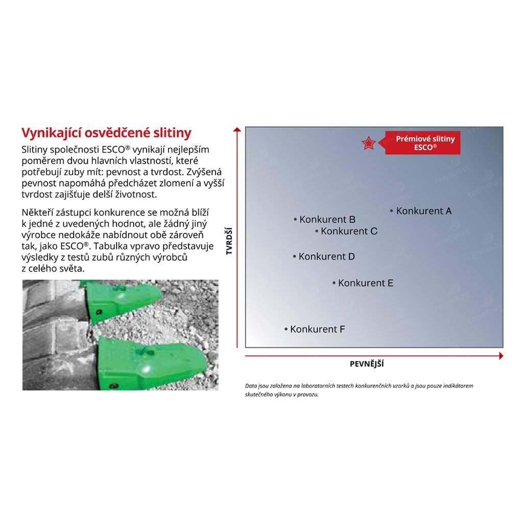 Poskytují všechny výhody prémiových slitin ESCO®, vynikající odolnost proti opotřebení otěrem, vysokou pevnost a provozní spolehlivost.
