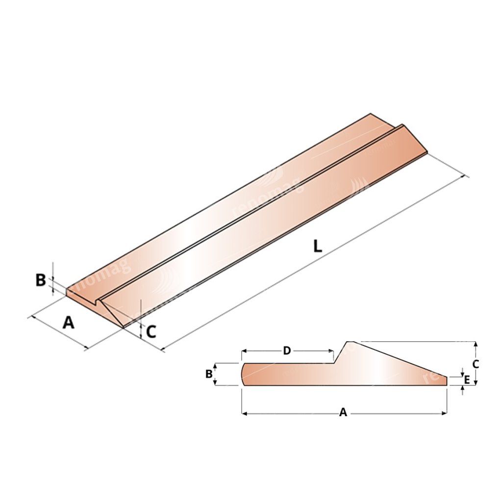 Pro opravu a výrobu lžic a lopat nabízíme válcovaný kalený profil, nadělený na délku dle přání zákazníka s úkosem tvrdosti 230 HB, 400 HB, 500 HB v různých tloušťkách.Alternativa k břitu z materiálu Hardox.